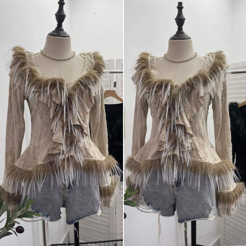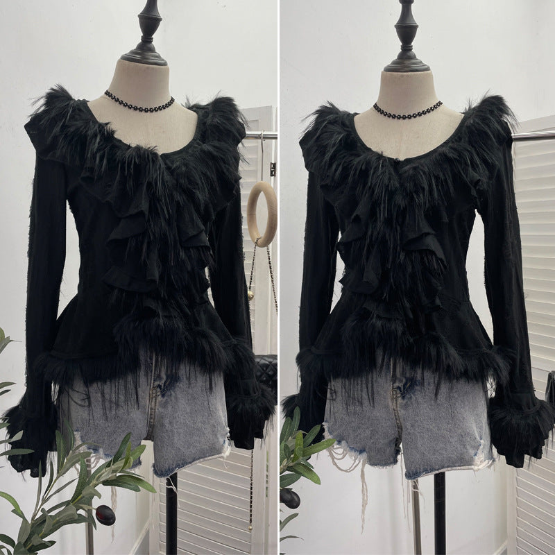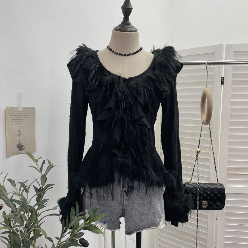 Real Shooting Waste Soil Wind Irregular Wood Ear Trumin Knitting To Make Old Hole Splicing Hairy Blouse Hottie Cardigan 2987 HZ1208