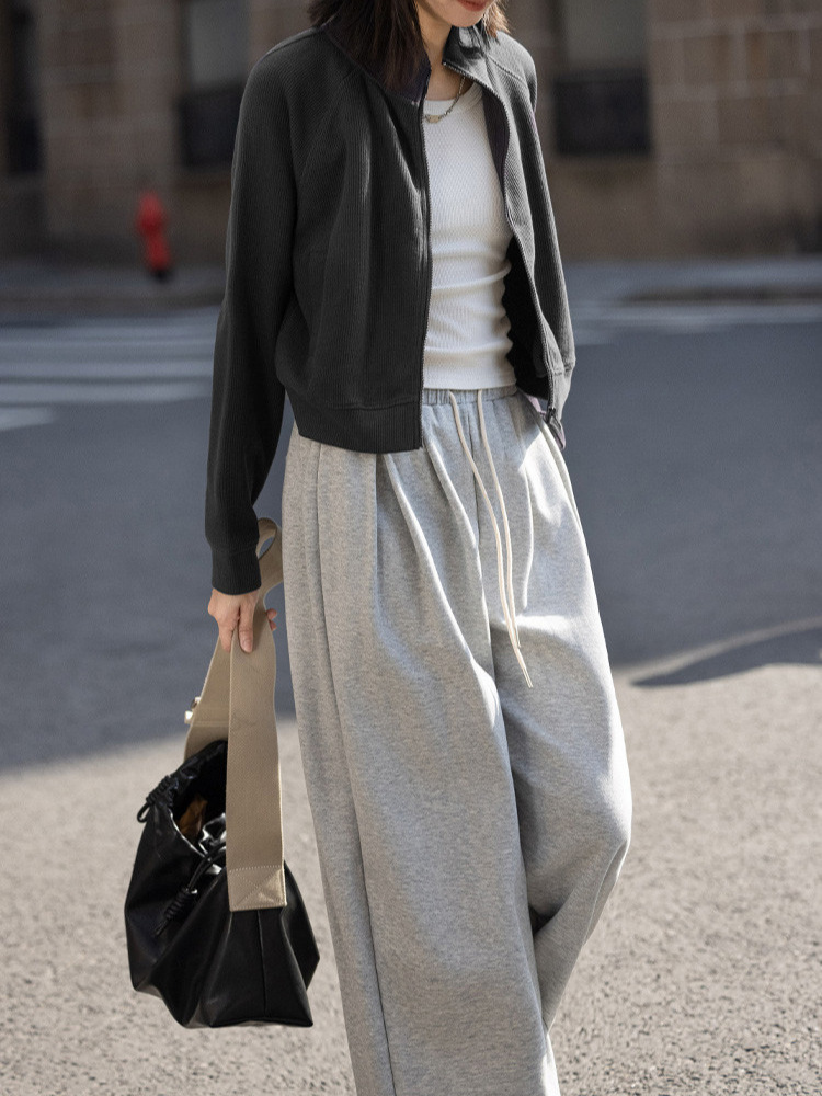 Slack Sense Simple Collar Jacket 2025 Spring And Autumn Dopamine Eye-Catching Basis Simple Waffle Coat Woman HZ1208
