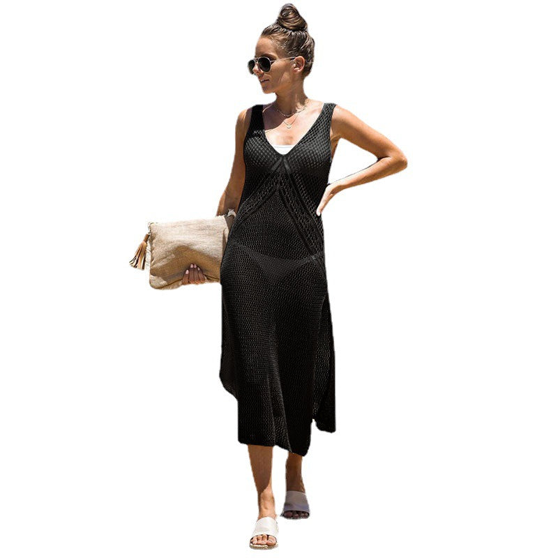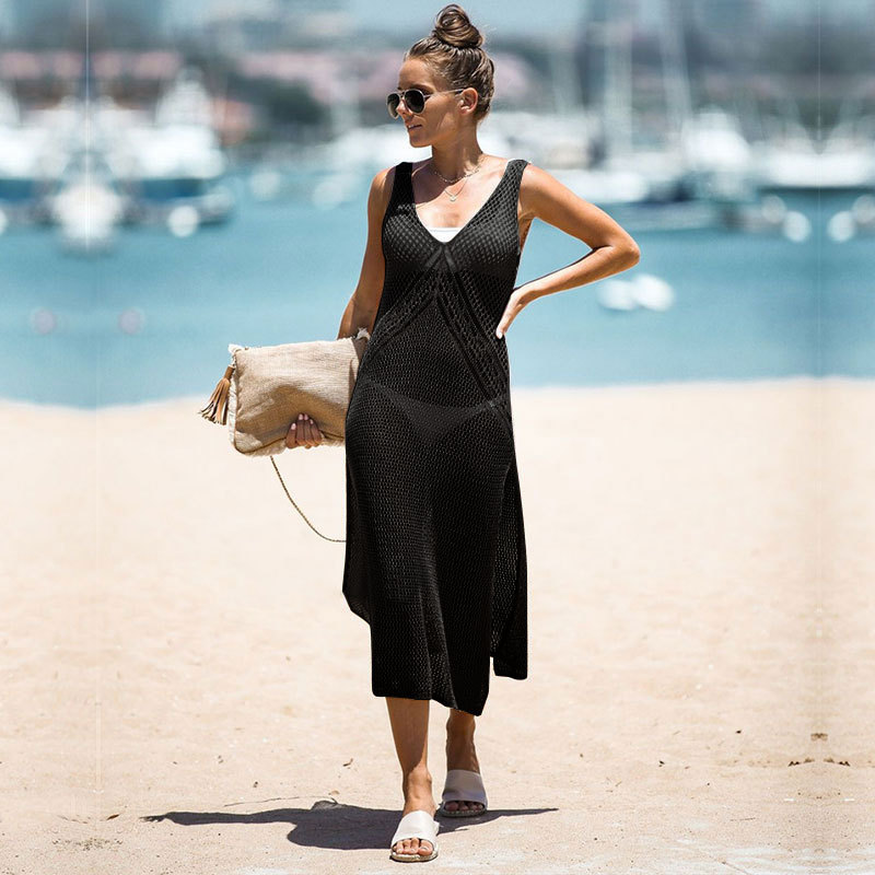 Spring And Summer New Beach Hoodie Solid Color Open Fork Sling Shirt Bikini Long Beach Dress Women's Dress HZ1208