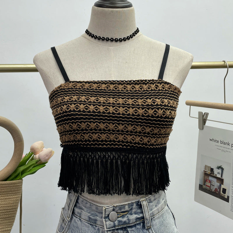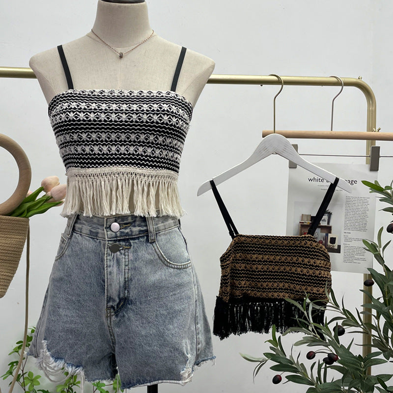 Women's Clothing Thaired Thaid Spliced Striped Sling Vest Short-Sleeved Sleeveless Tector-Booed Blouse 88932 HZ1208