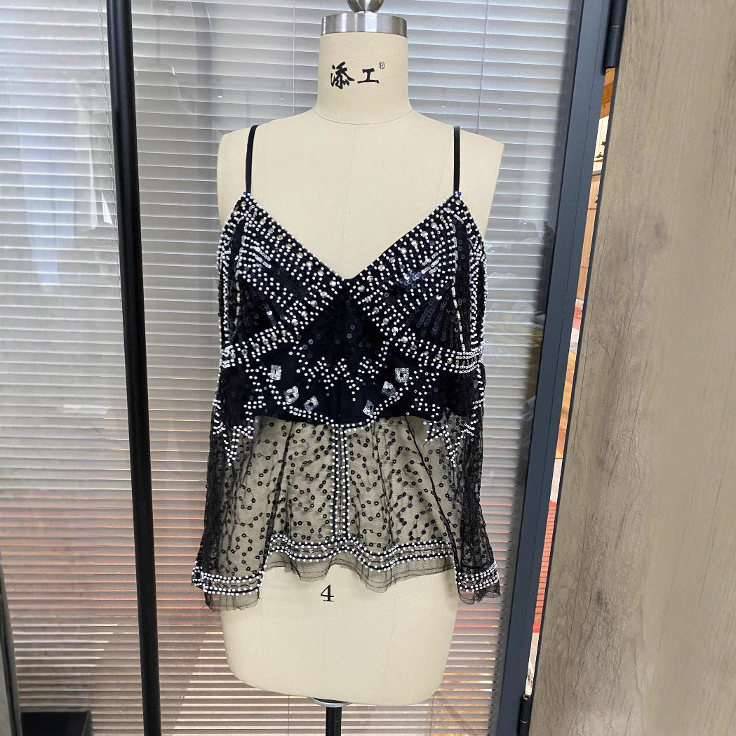 Half-High Collar Hanging Neck-Laught Sling With Metallic Luster Repair Vest Outside The Hot Girl Trend Girl Dress HZ1208